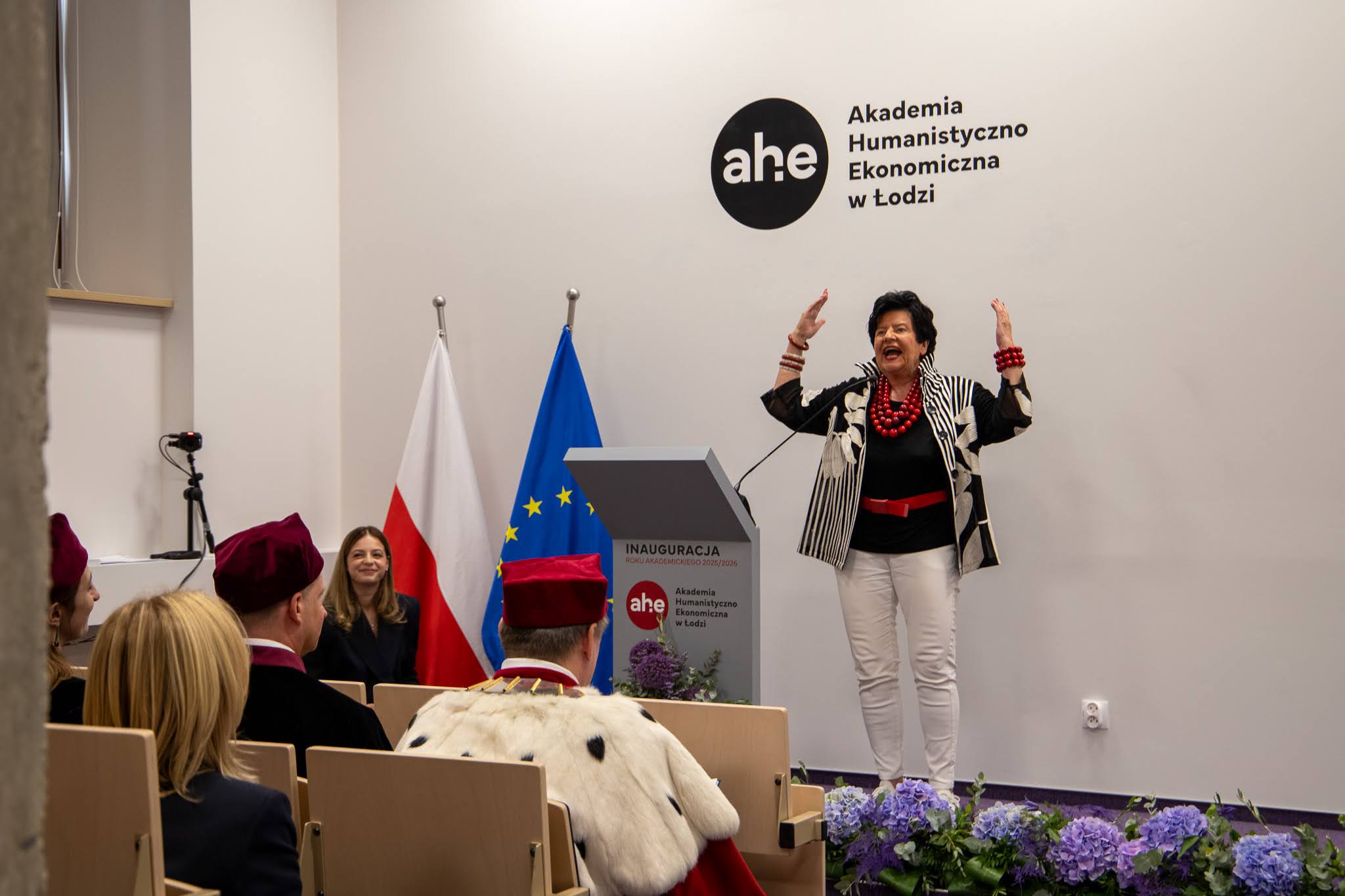 Uczelnia ma 33 lata, a więc należy do mojego ukochanego pokolenia Z – powiedziała prof. Joanna Senyszyn. – Jako nauczyciel akademicki z pięćdziesięcioletnim stażem wiem, że najważniejsi są studenci. Dlatego najważniejsze jest, żeby tak jak w waszej uczelni relacje między studentami a wykładowcami układały się na zasadzie mistrz–uczeń.