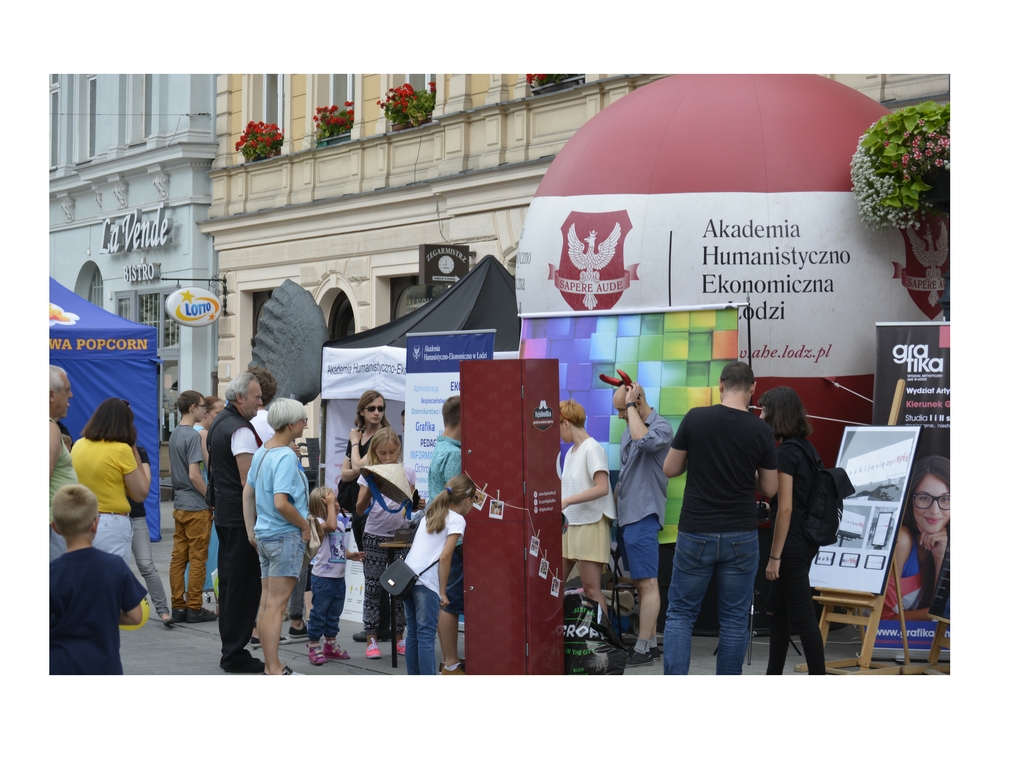 Przez te dwa dni 30-31 lipca, sporo się działo wokół punktu Akademii Humanistyczno-Ekonomicznej w Łodzi. Największą atrakcją okazałasię Fejsbudka, przed którą ustawiały się gigantyczne kolejki. W sumie na Piotrkowskiej w miniony weekend pojawiło się 150 tysięcy osób. Podczas tych dwóch dni, łodzianie mogli zapoznać się z ofertą eduakcyjną AHE, CKP oraz PUW.