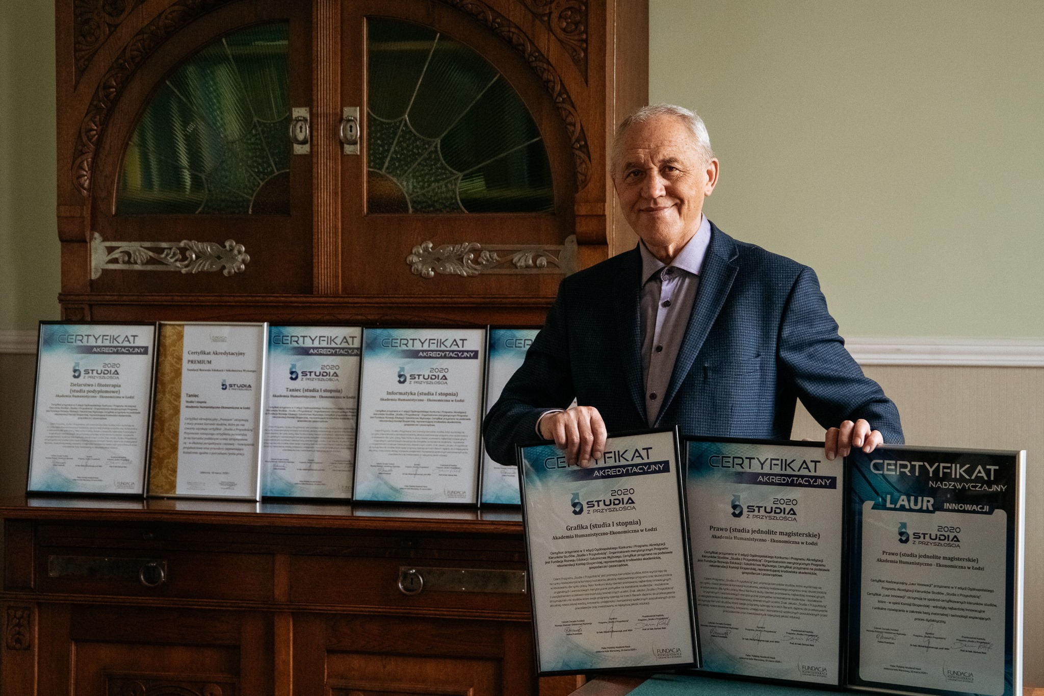 Ponadto, nasz kierunek PRAWO (studia jednolite magisterskie) został wyróżniony nadzwyczajnym certyfikatem - LAUREM INNOWACYJNOŚCI, a kierunek TANIEC – Certyfikatem Akredytacyjnym PREMIUM.