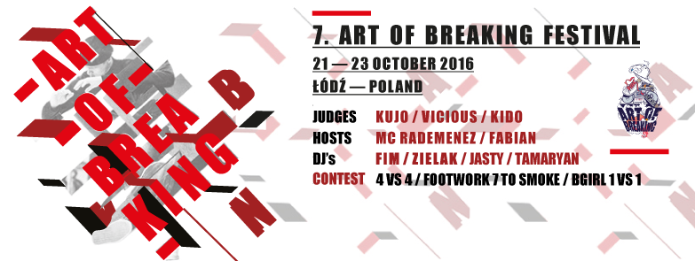 Już w ten weekend, 21-23.10.2016r. odbędzie się jedno z najważniejszych wydarzeń tanecznych roku – Międzynarowdowy Festiwal Art of Breaking. To już 7 edycja tej wielkiej imprezy, na którą co roku przyjeżdzają wszyscy prekursorzy breakingu i osoby zainteresowane kulturą hip-hop z całego świata. Jest to nie tylko miejsce rywalizacji najlepszych bboyów i bgirl na świecie, ale także miejsce spotkań i wymiany doświadczeń.