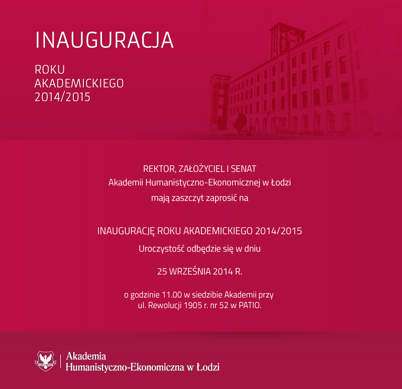 Inauguracja Roku Akademickiego 2014/2015 w Akademii Humanistyczno-Ekonomicznej w Łodzi odbędzie się 25 września o godz. 11.00 na Patio.