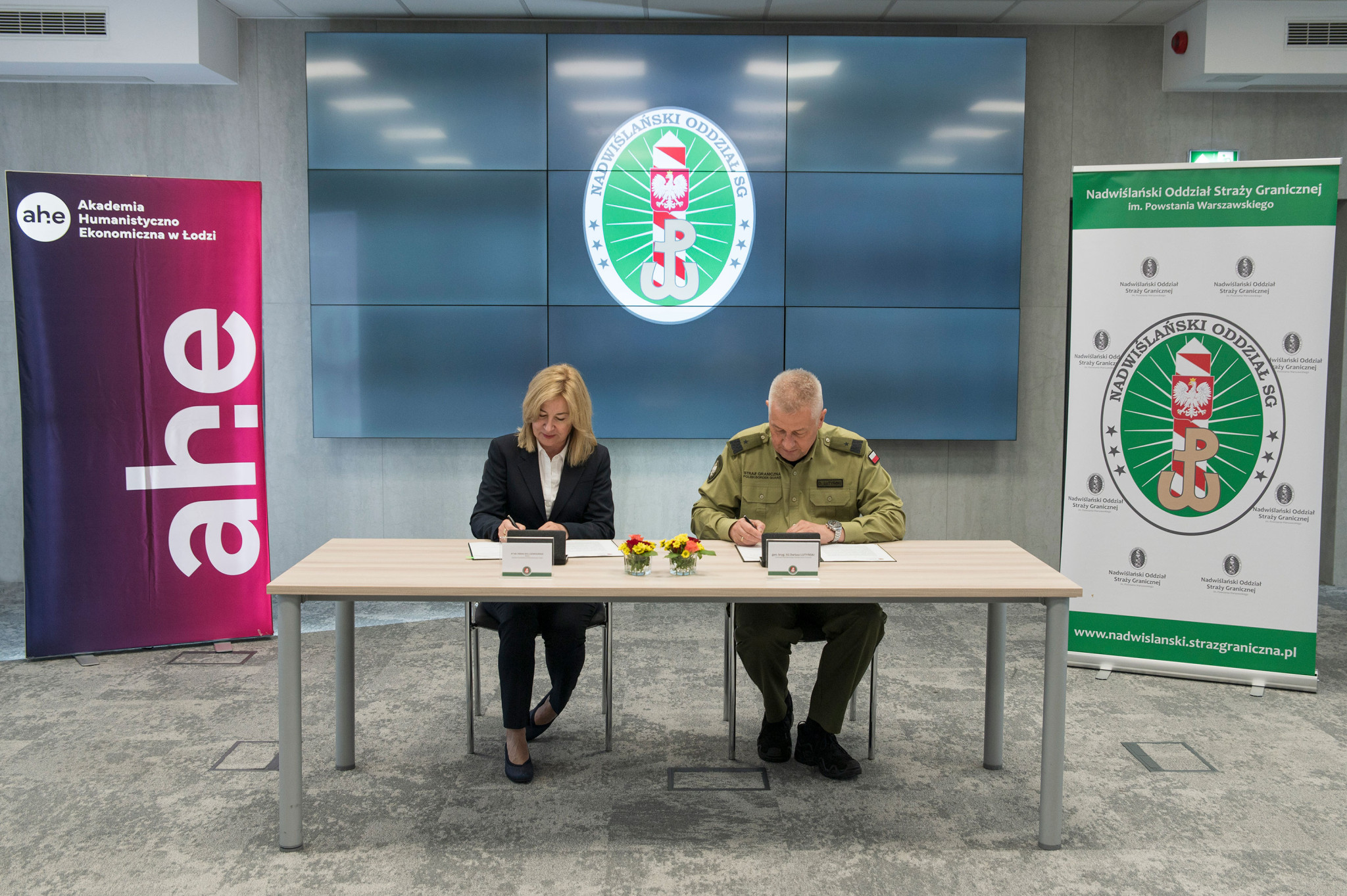 Rektor dr hab. Elżbieta Dul-Ledwosińska, prof. AHE, podpisała w imieniu Akademii Humanistyczno-Ekonomicznej w Łodzi porozumienie z Nadwiślańskim Oddziałem Straży Granicznej, reprezentowanym przez komendanta gen. bryg. SG Dariusza Lutyńskiego.