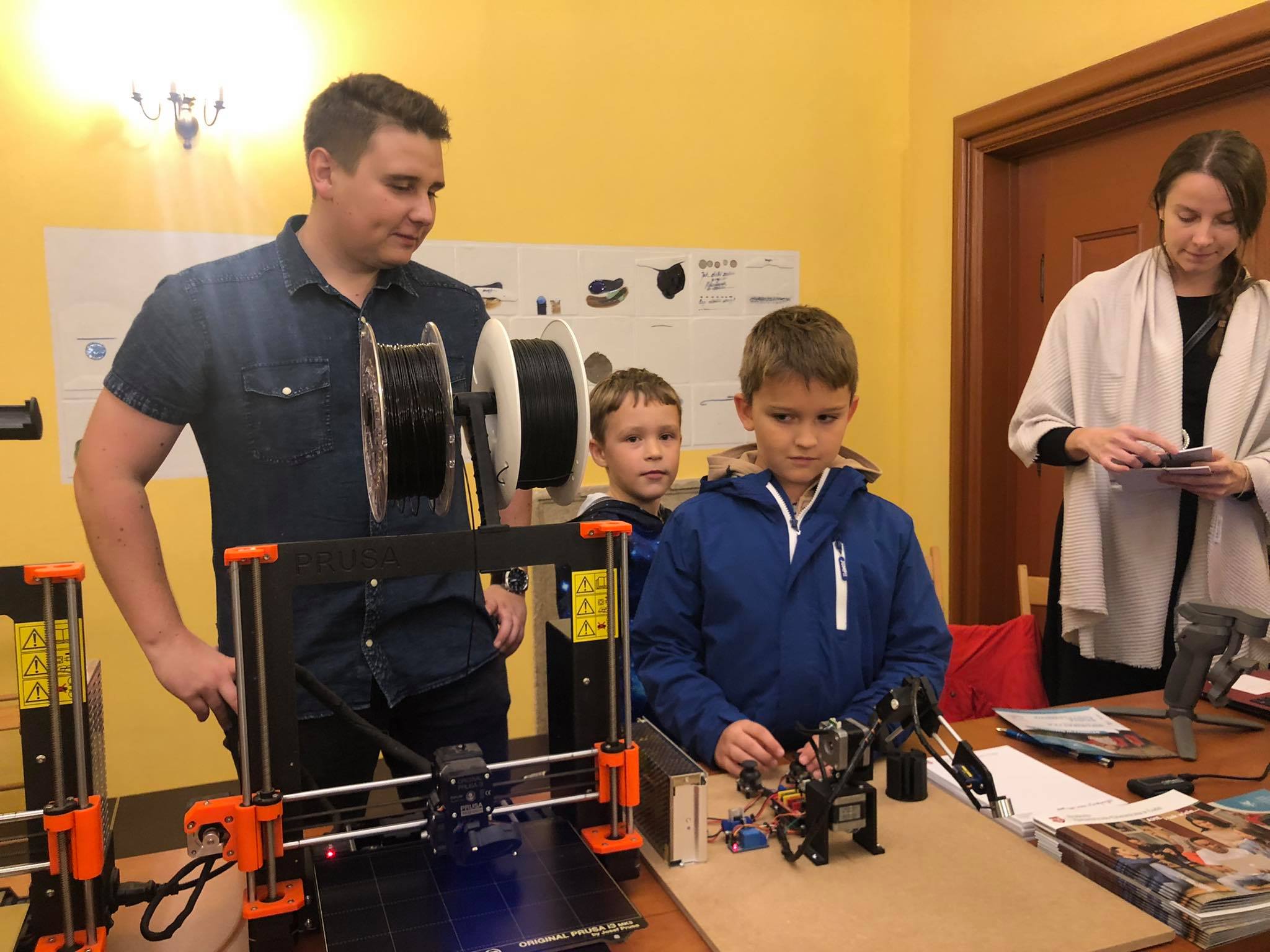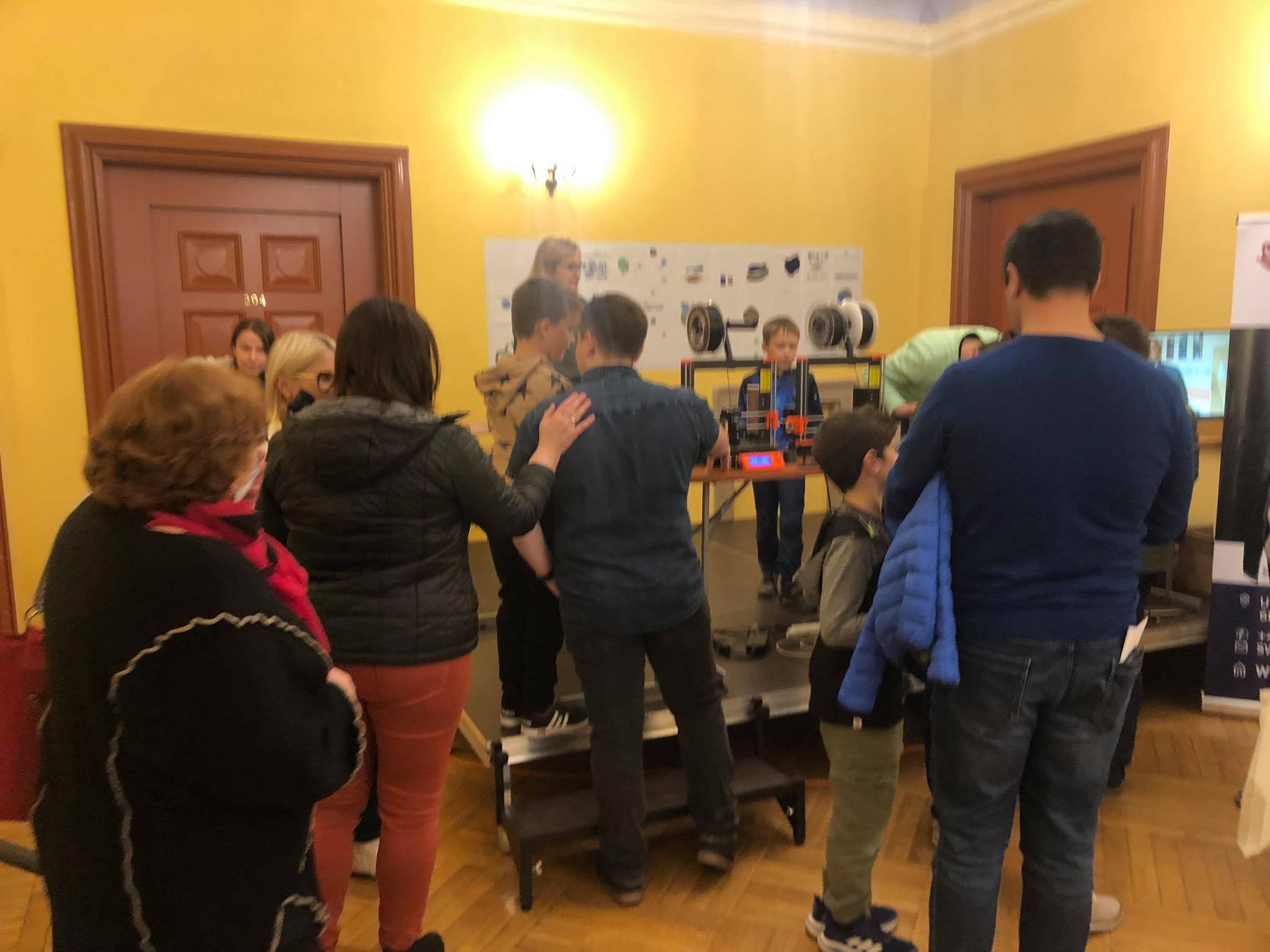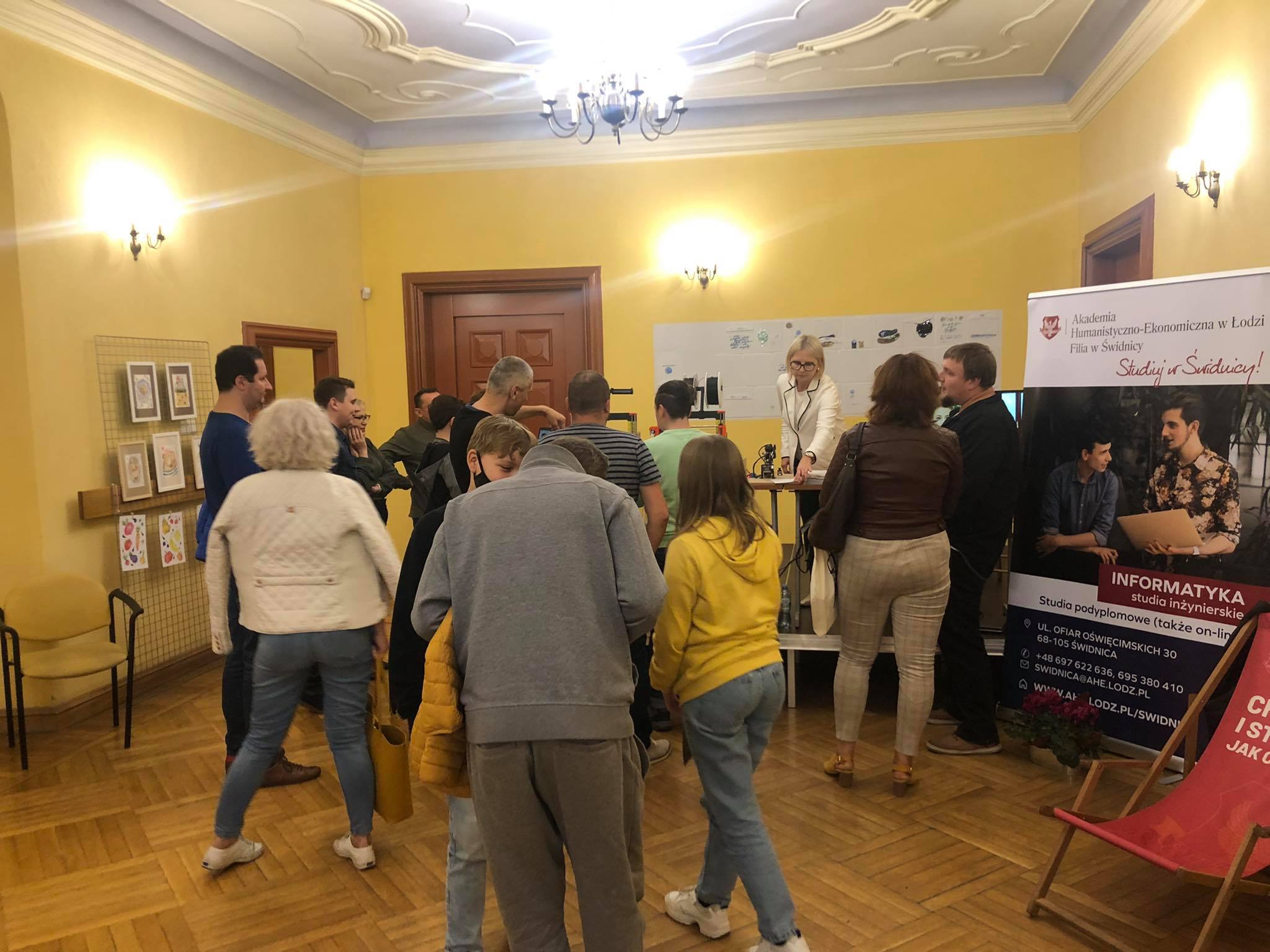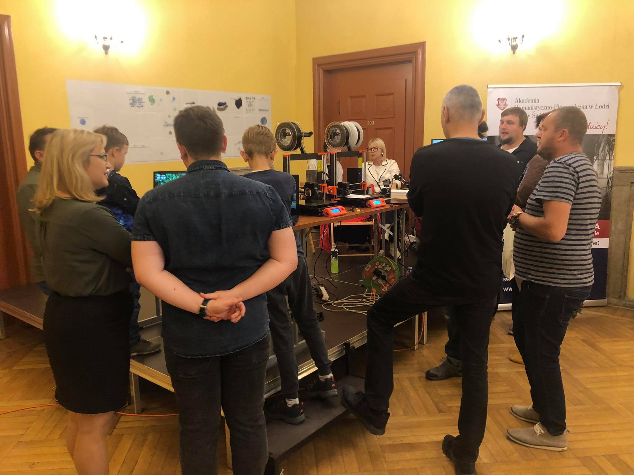 Goście odwiedzający nasze stoisko mieli nie tylko okazję poznać naszą Uczelnię, ale także porozmawiać z absolwentem informatyki w Naszej Filii p. Jakubem Gadeckim i poznać stworzone przez niego roboty.