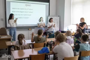 W pierwszej części uczniowie poznali kulturę i obyczaje Hiszpanii i Turcji, a także uczyli się podstawowych zwrotów w języku hiszpańskim i tureckim. Dzieci były bardzo zainteresowane tematyką warsztatów i bardzo szybko uczyły się nowych słów.