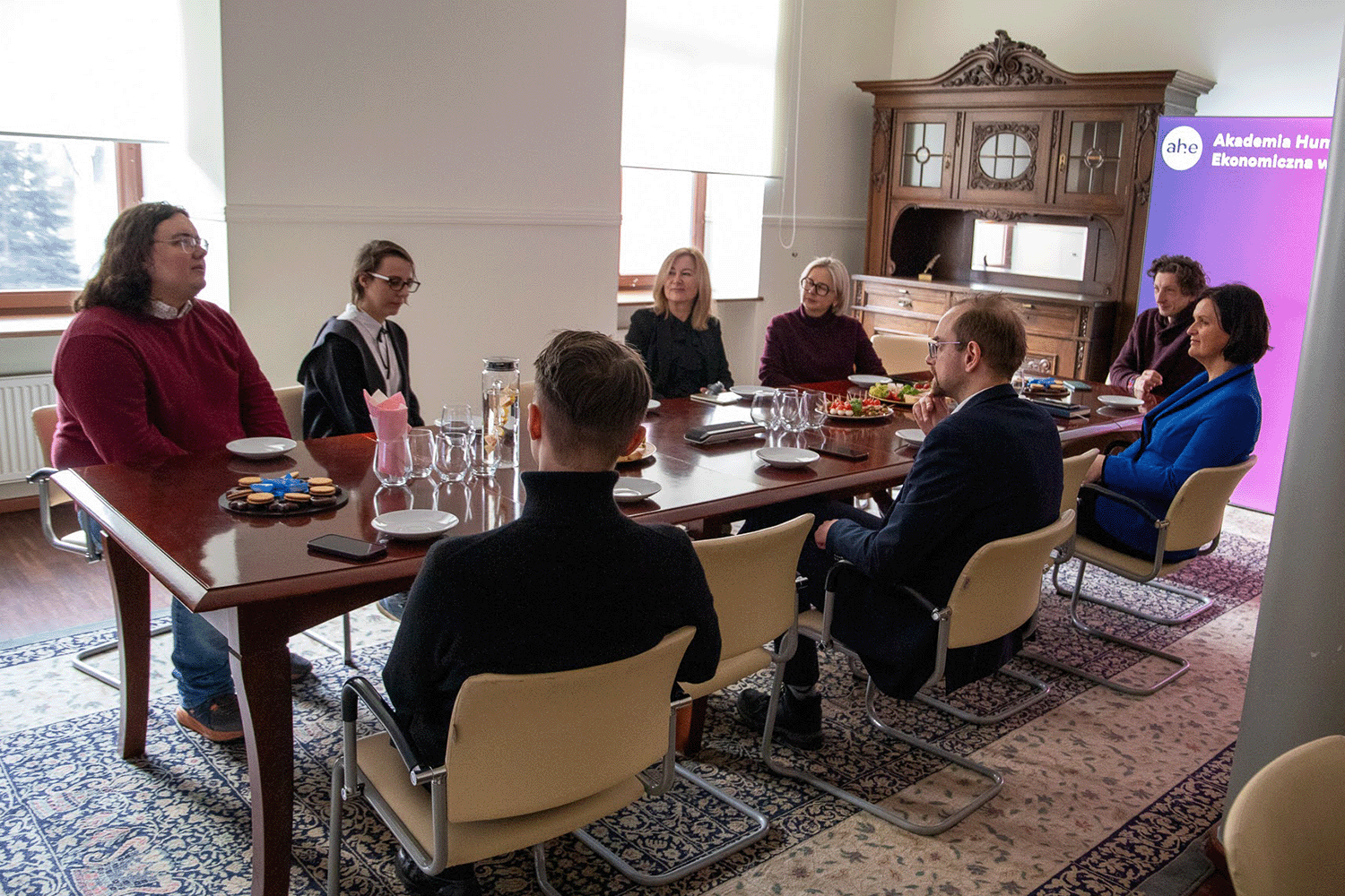 Przedstawiciele koła naukowego kierunku grafika uczestniczyli w śniadaniu z rektor dr hab. Elżbietą Dul-Ledwosińską, prof. AHE.