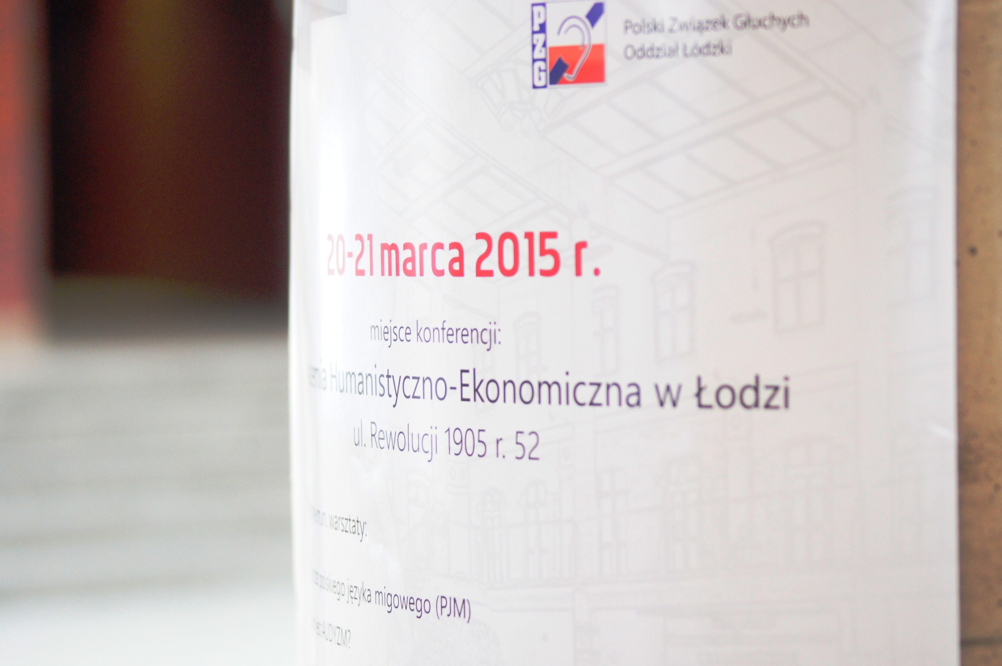 W dniach 20-21 marca w Akademii Humanistyczno-Ekonomicznej w Łodzi odbyła się konferencja pt. Edukacja niesłyszących wczoraj, dziś i jutro. W stulecie kształcenia głuchych w Łodzi. Organizatorami konferencji była Akademia Humanistyczno-Ekonomiczna w Łodzi wraz z Specjalnym Ośrodkiem Szkolno-Wychowawczym dla Dzieci Niesłyszących w Łodzi i Polskim Związkiem Głuchych Oddział w Łodzi. Konferencja odbyła się w siedzibie Uczelni. Wzięło w niej udział ok.130 osób. Byli to zarówno naukowcy m.in. prof. dr hab. Kazimiera Krakowiak (Katolicki Uniwersytet Lubelski im. Jana Pawła II), prof. dr hab. Bogdan Szczepankowski (przewodniczący Polskiej Rady Języka Migowego), dr hab. Dorota Podgórska-Jachnik (Uniwersytet Kazimierza Wielkiego w Bydgoszczy), wykładowcy uczelni wyższych z Instytutu Fizjologii i Patologii Słuchu w Warszawie, Instytutu Głuchoniemych w Warszawie, Pracowni Lingwistyki Migowej, Uniwersytetu Warszawskiego, Uniwersytetu Pedagogicznego w Krakowie, Uniwersytetu Wrocławskiego, Katolickiego Uniwersytetu Lubelskiego im. Jana Pawła II, Akademii Pedagogiki Specjalnej w Warszawie, Uniwersytetu Przyrodniczo-Humanistyczny w Siedlcach. Uczestniczyła bardzo duża grupa nauczycieli z ośrodków dla dzieci niesłyszących z całej Polski, poza tym uczestniczyli nauczyciele szkół integracyjnych, logopedzi, pedagodzy szkolni, rodzice dzieci niesłyszących oraz studenci.