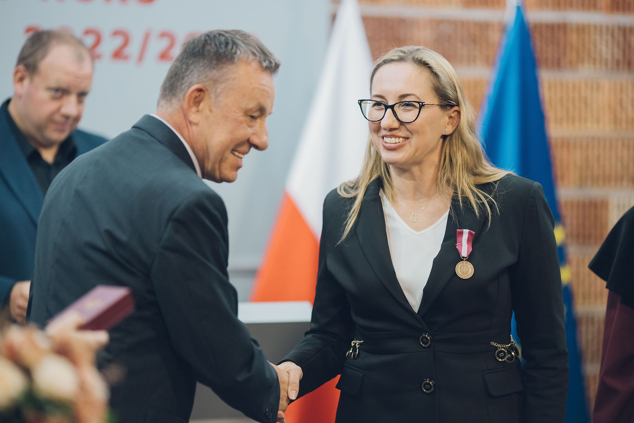 Brązowy medal za długoletnią służbę otrzymali: dr inż. Agnieszka Bulska – dziekan kierunku transport, dr adw. Mariusz Olężałek – dziekan kierunku prawo, Elżbieta Trojniar – dziekan i dyrektor filii AHE w Wodzisławiu Śląskim.