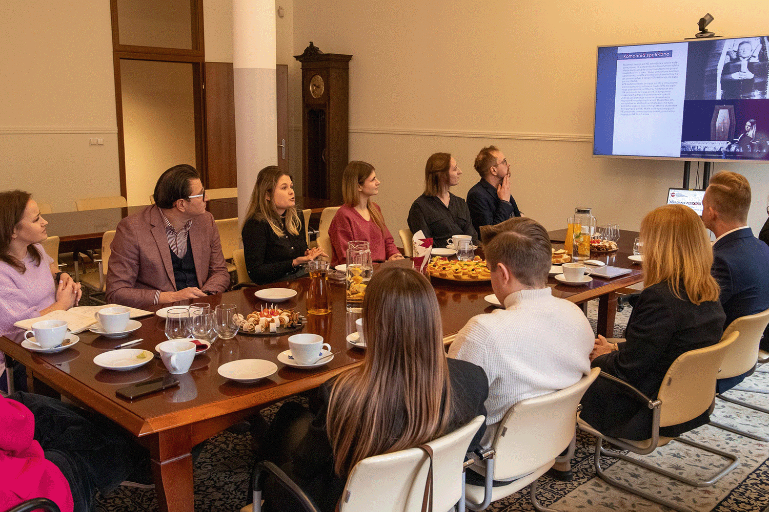 Podczas spotkania omówiono także kampanię społeczną przygotowaną przez studentów dziennikarstwa. Projekt ten spotkał się z dużym zainteresowaniem, a rektor pochwaliła zaangażowanie i kreatywność studentów, podkreślając, że takie inicjatywy są doskonałym przykładem na to, jak młodzi ludzie mogą wpływać na otaczający ich świat. Zaproponowano dalsze prace nad projektem z udziałem studentów kierunku grafika.