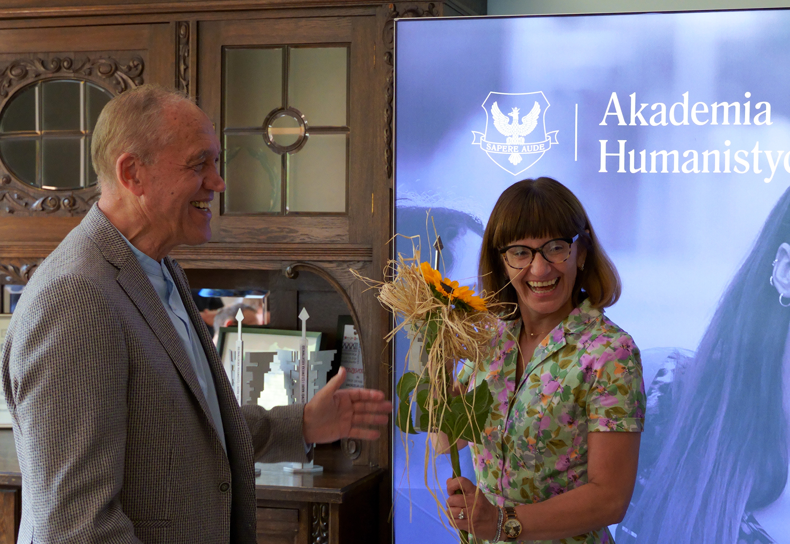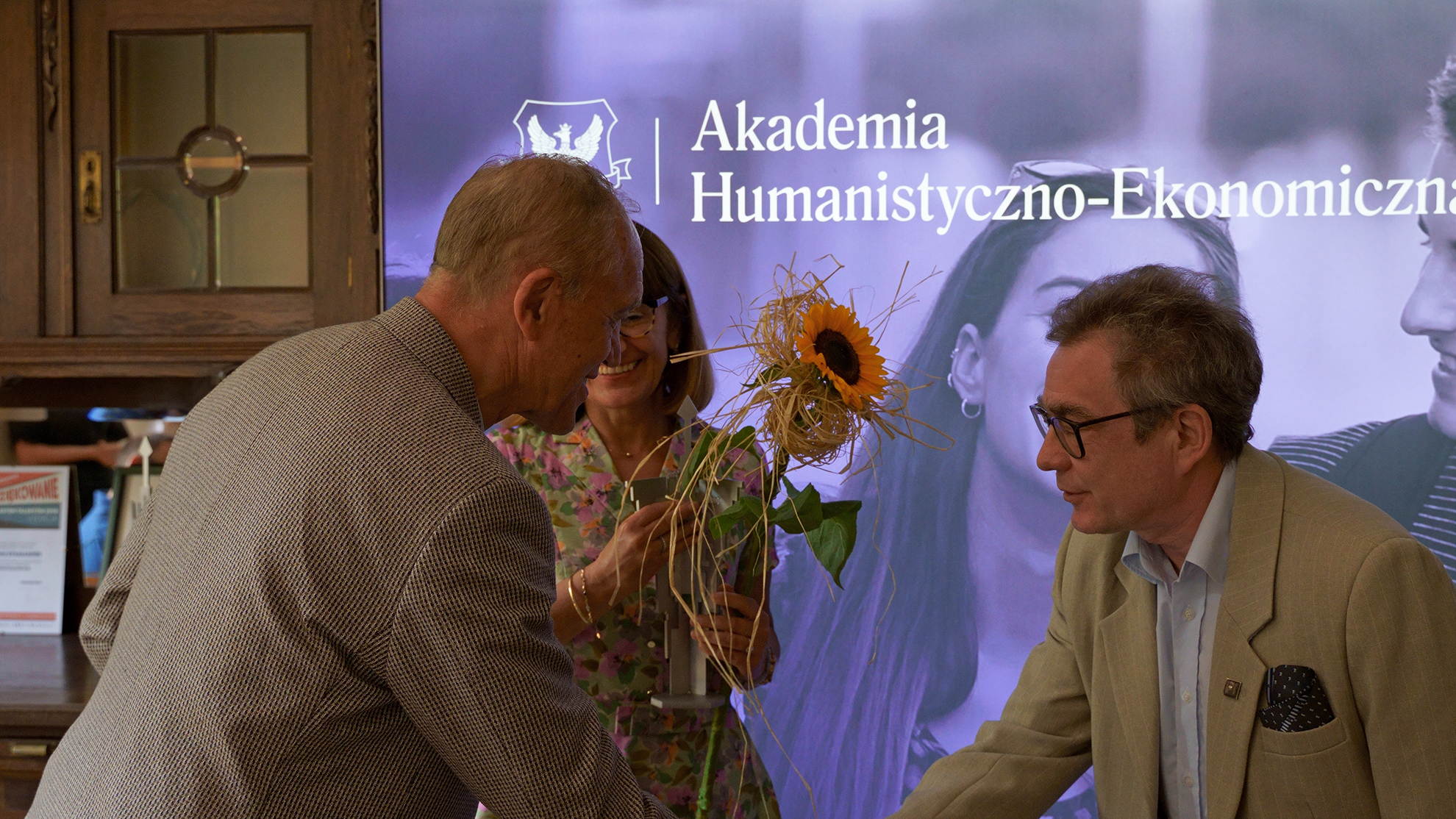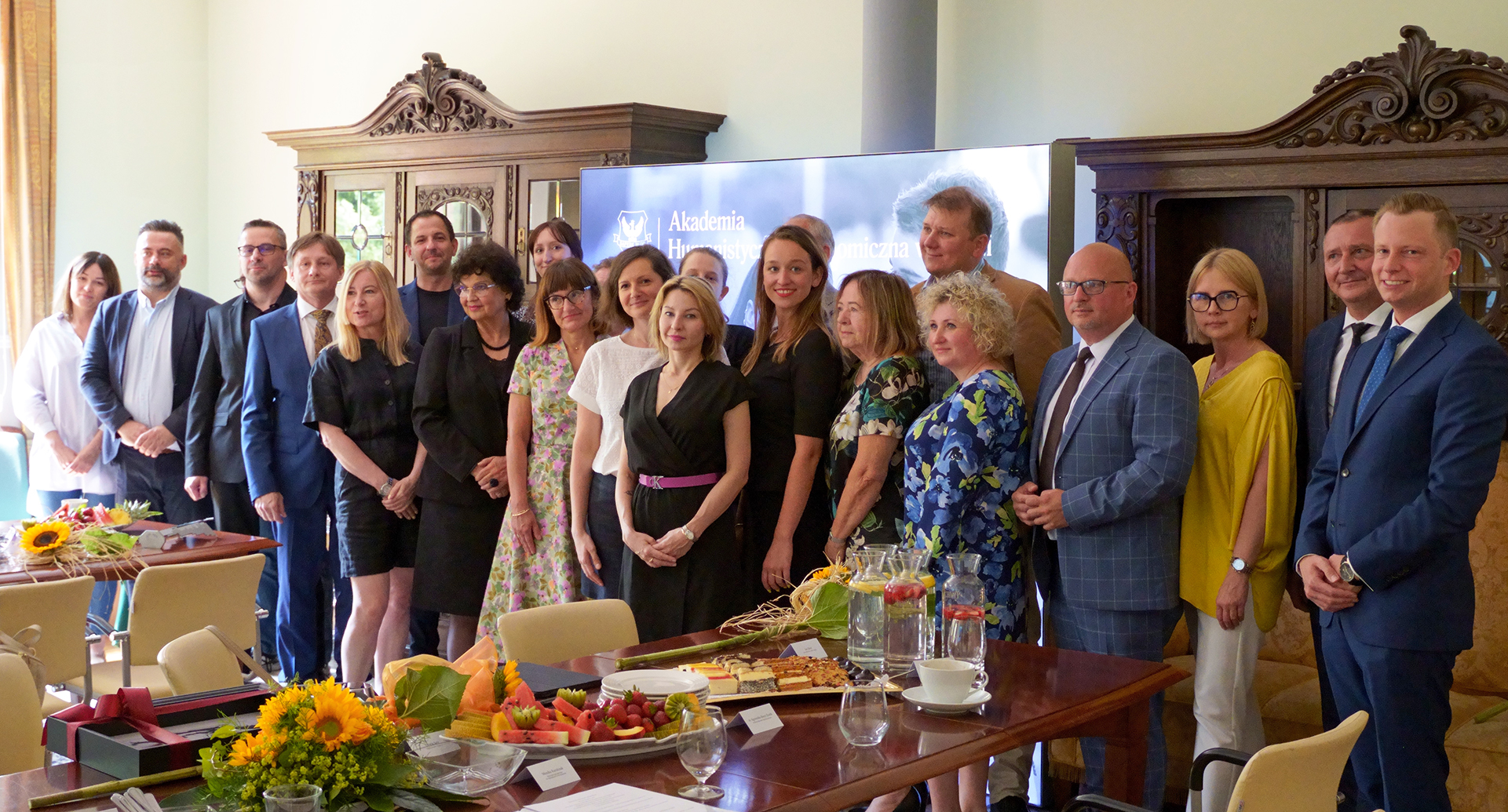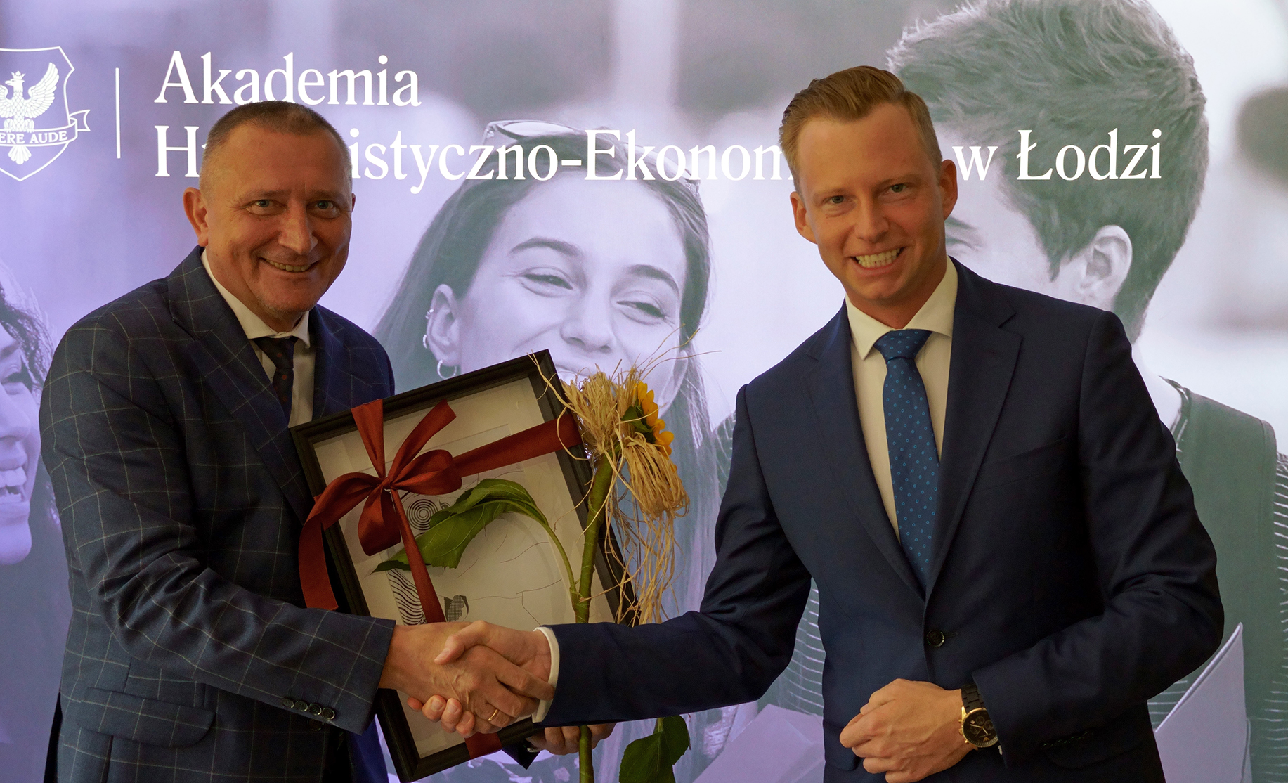 Przybyłych gości powitał kanclerz dr prof. AHE Makary K. Stasiak, założyciel uczelni, oraz dr Łukasz Zaorski-Sikora – prorektor ds. kształcenia.