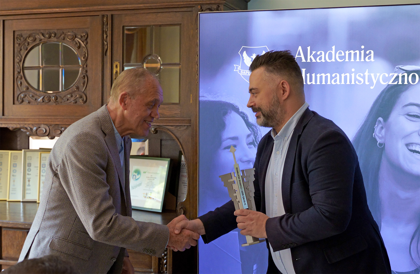 Statuetkę „Za rozwój nauki i człowieka kreatywnego” z rąk kanclerza Makarego K. Stasiaka otrzymali: