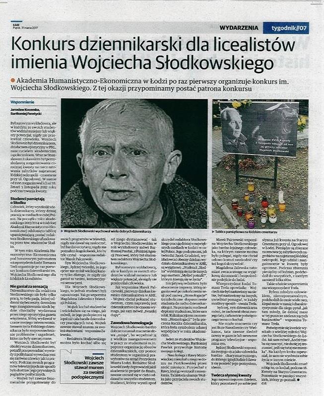 Młodzie adeptci sztuki dziennikarskiej, przygotowali wspólnie artykuł o legendzie polskiego dziennikarstwa, red. Wojciechu Słodkowskim. Artykuł ukazał się w piątkowym dodatku do Dziennika Łódzkiego -"Kocham Łódź".