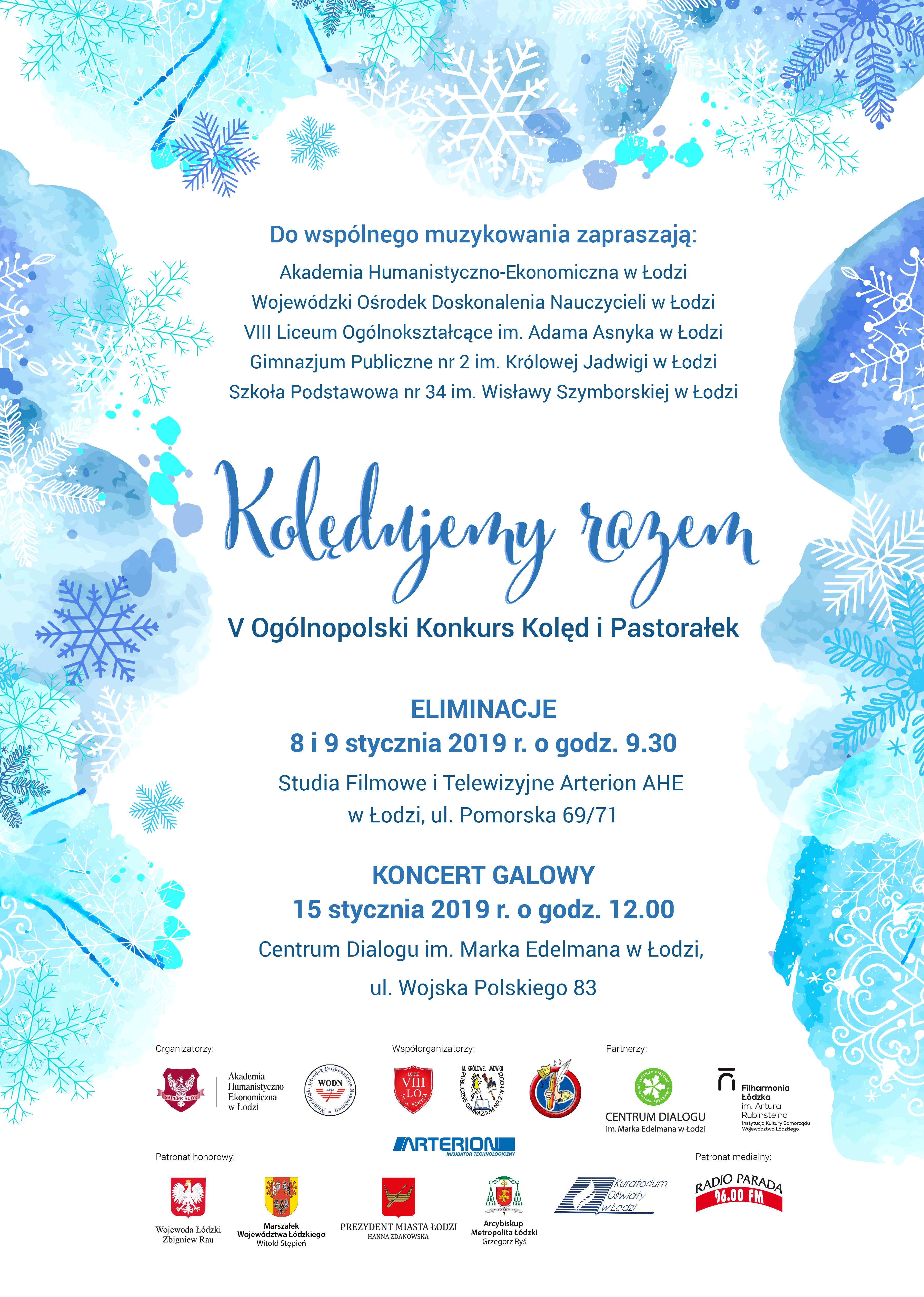 Koncert galowy oraz wręczenie nagród odbędzie się 15 stycznia 2019 r. o godz. 12.00 w Centrum Dialogu im. Marka Edelmana w Łodz, ul. Wojska Polskiego 83.