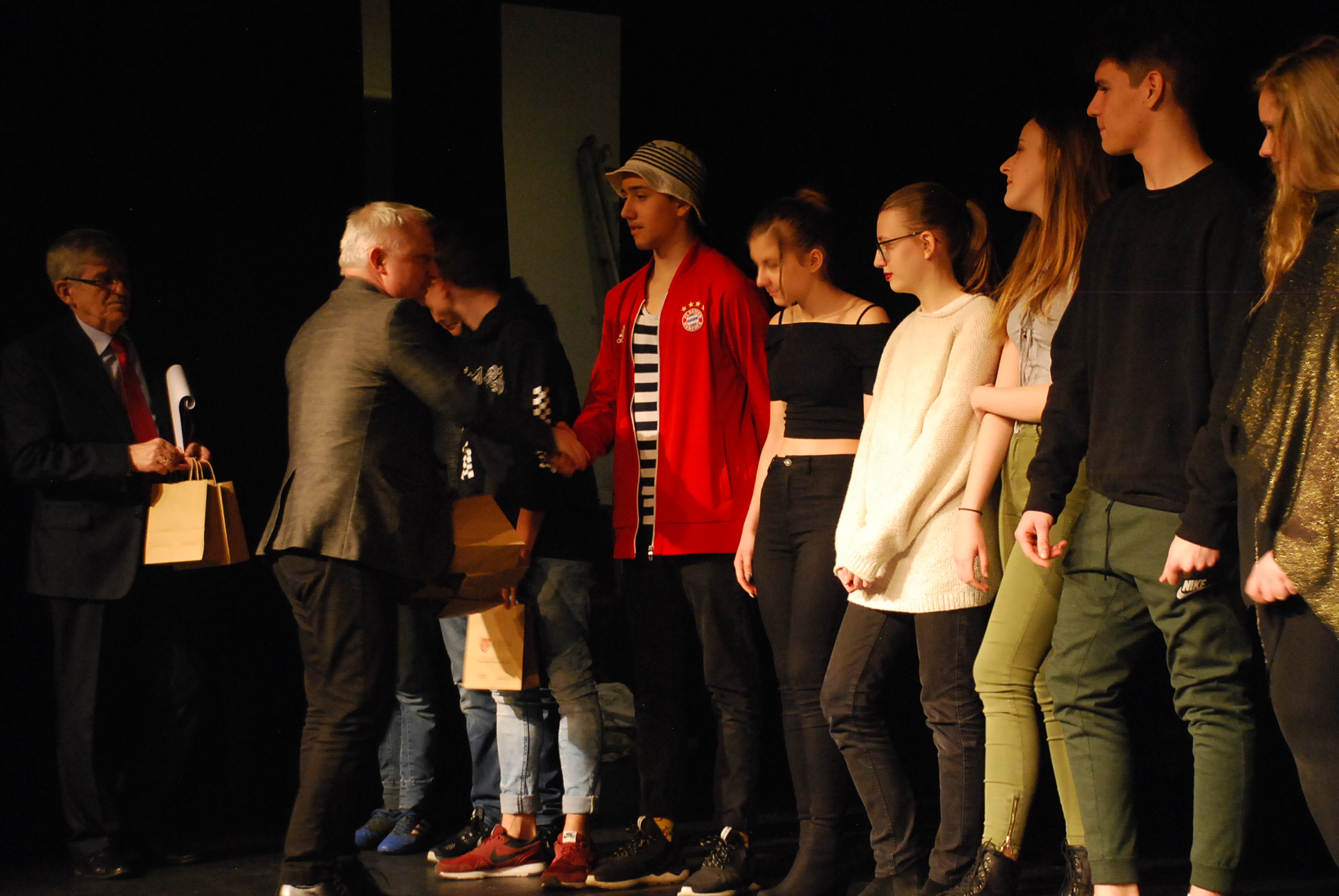 Dziekan WZ w Sieradzu wręczył młodym aktorom upominki z logo Uczelni.