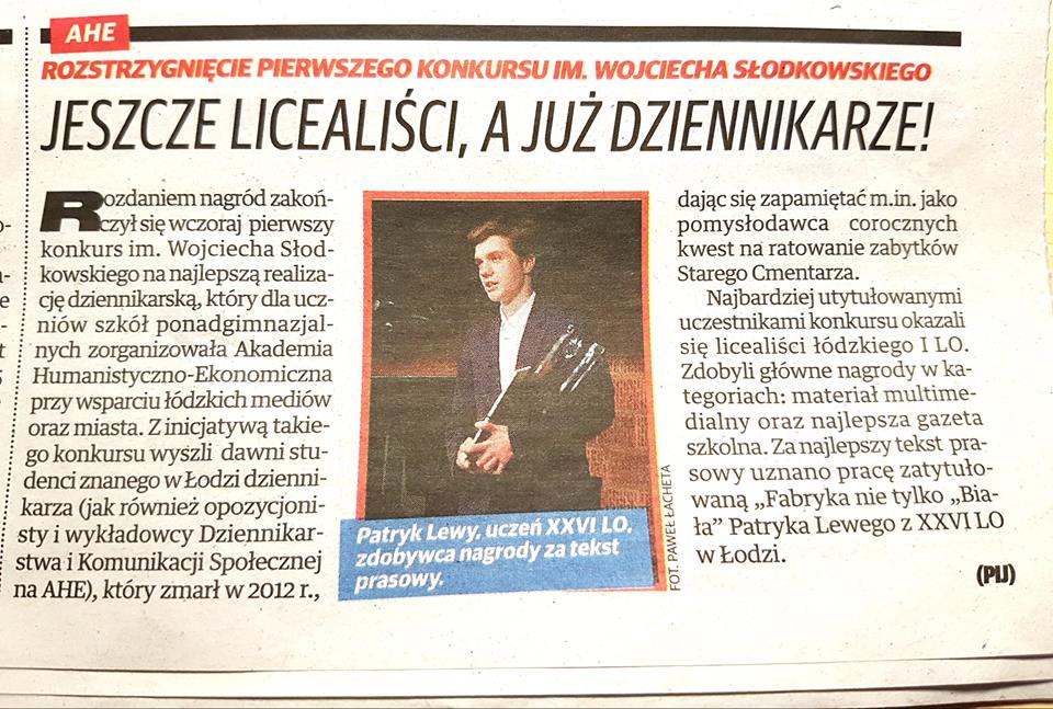 Specjalnie na konkursową galę powstała również gazeta, w której zostały wydrukowane teksty uczniów szkół ponadgimnazjalnych. Pismo stworzone przez byłych studentów red. Słodkowskiego stało się dla młodych miejscem ich dziennikarskiego debiutu, który znajdzie swoją kontynuację na łamach łódzkich tytułów oraz w lokalnych redakcjach radiowych i telewizyjnych.
