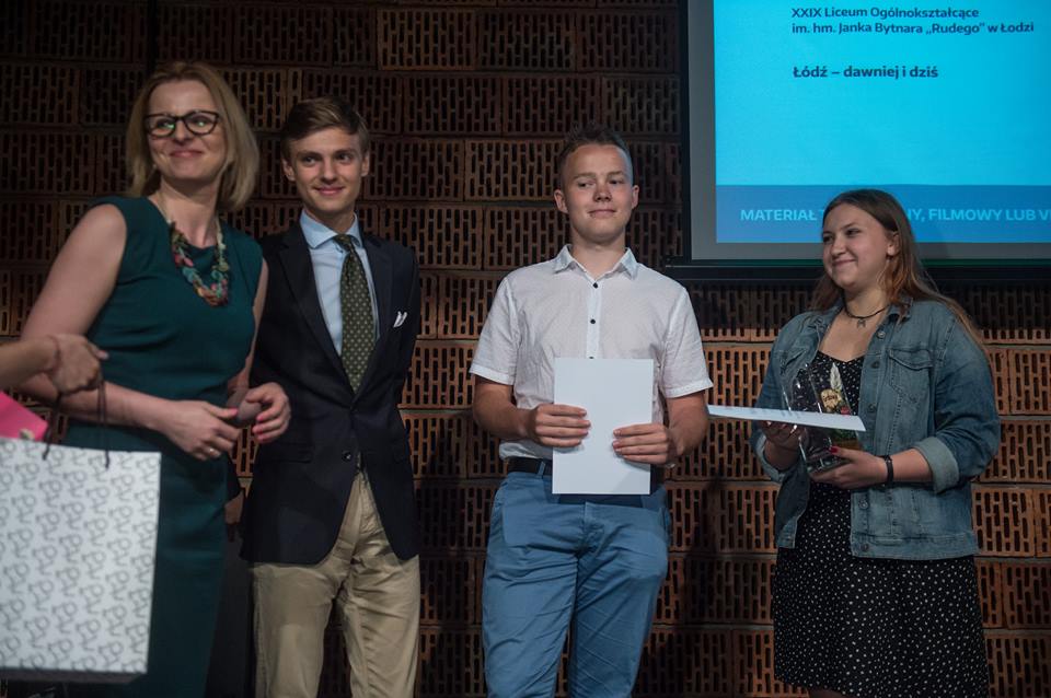 - Oskar Bugajny, Bartosz Misztal, Olga Szczesińska, XXIX LO im. hm. Janka Bytnara "Rudego" w Łodzi, za materiał: „Łódź – dawniej i dziś”