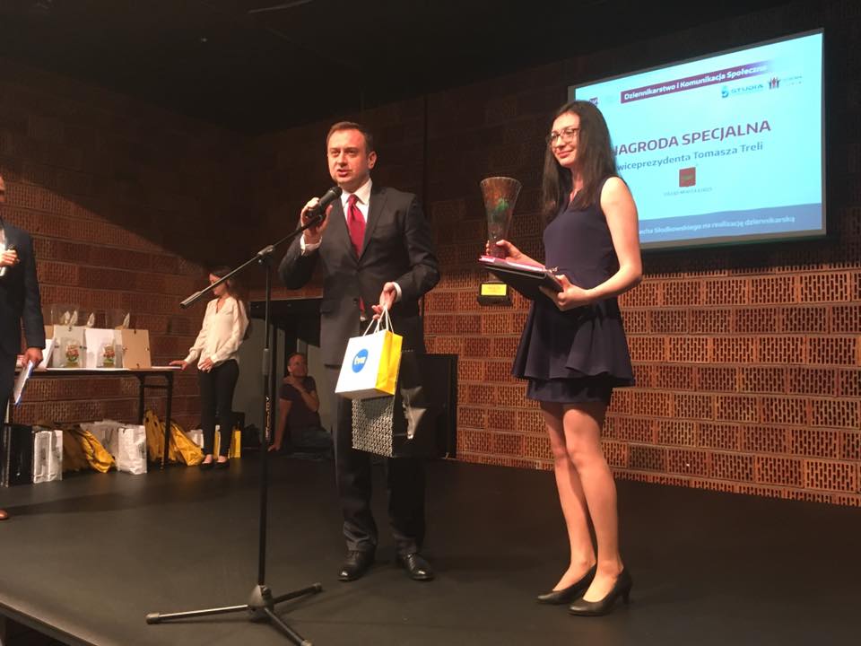 Nagrodę specjalną wiceprezydenta Łodzi Tomasza Treli odebrała Agnieszka Rózga, uczennica XXVI Liceum Ogólnokształcącego im. Krzysztofa Kamila Baczyńskiego w Łodzi – za reportaż poświęcony Wojciechowi Słodkowskiemu, dzięki któremu Agnieszka zdobyła 6. miejsce na Ogólnopolskiej Olimpiadzie Medialnej.