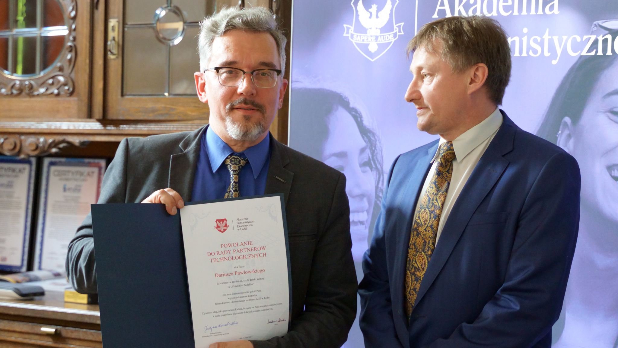 11 maja 2022 r. aktu wręczenia powołań dokonali: prorektor ds. rozwoju i kształcenia zdalnego dr Wiesław Przybyła, dziekan kierunku dziennikarstwo i komunikacja społeczna mgr Justyna Kowalewska.