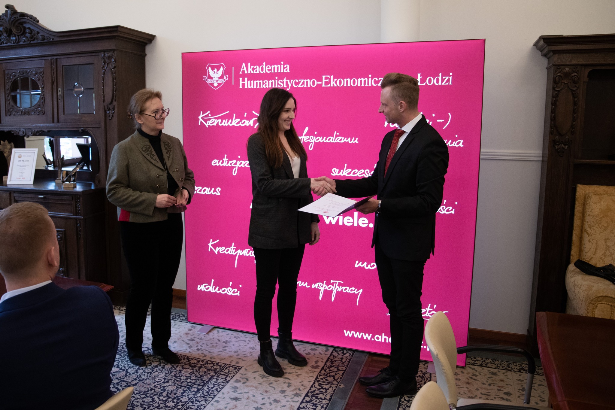 - mgr Oktawia Ewa Braniewicz, dziekan studiów anglojęzycznych