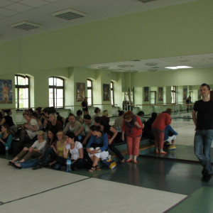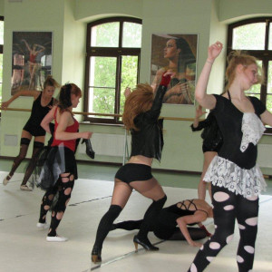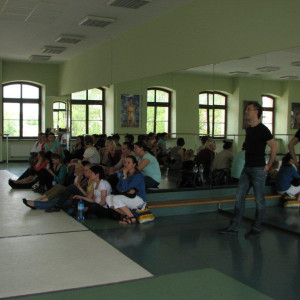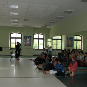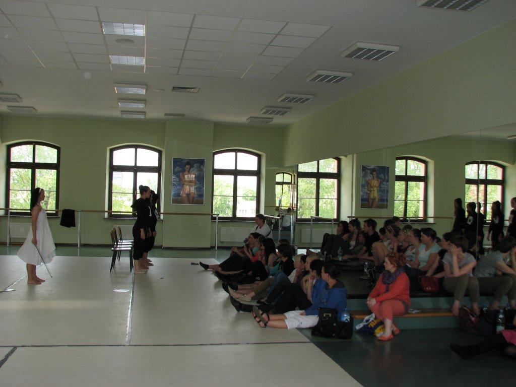 "Dla naszych gości - studentów Animacji Kultury Uniwersytetu Zielonogórskiego, zorganizowaliśmy na sali baletowej specjalny pokaz dyplomów choreograficznych, 14 maja 2011 roku" (foto: Iwona Krakowiak). Obrazy galerii