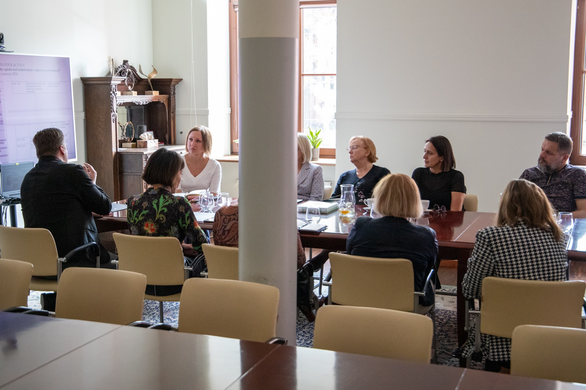 Podczas spotkania Rady Programowej kierunku pedagogika przedszkolna i wczesnoszkolna dziekan kierunku dr Daria Modrzejewska zapoznała uczestników z planowanymi działaniami w semestrze letnim, obejmującymi m.in. wizyty studyjne dla studentów, organizację trzeciej edycji obozu studenckiego oraz konferencję edukacyjną pt. Granice odpowiedzialności: prawne aspekty opieki nad małoletnim w placówce edukacyjnej, która zaplanowana jest na 12 czerwca 2026 r.